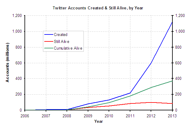 This means I've spent a LOT of time getting data out of Twitter and analysing the hell out of it. Eg, over that time I found and reported half a million spam accounts to Twitter - but really I did that just for the fun of it.